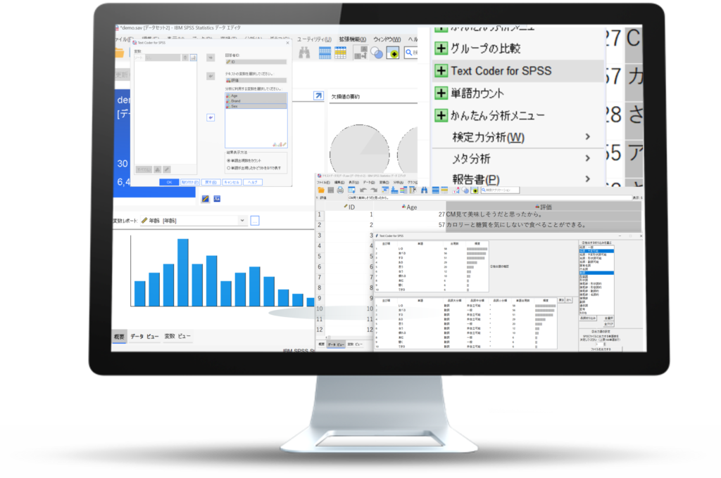 IBM SPSS Statistics 上で直接稼働する独自開発アドオンです。日本語のテキストデータを即座にSPSSで扱える“分析用データ”に変換するツールです。