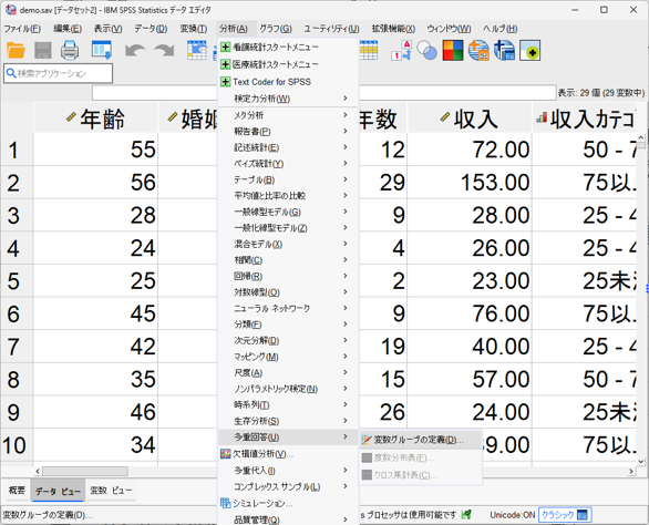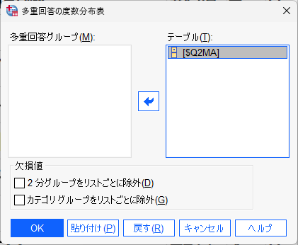 この前処理を行ってはじめて、SPSSの多重回答機能が使えるようになります。