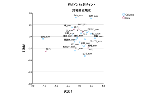 キーワードと属性データ(性別・年代・店舗・病棟など)を同一プロット上で可視化。